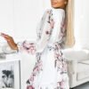 Feminine dress with ruffles, double skirt, envelope neckline and belt. Made of chiffon fabric on a lining. Dress made of fabric in roses on a white background. Brand numoco. European production.