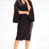 Midi dress with a heart neckline and slit sleeves, which add to its unique character. This model optically slims the silhouette thanks to vertical darts.