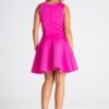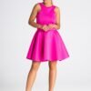 The dress is made of elastic material that fits the body. Fitted top, flared bottom. Fastened at the back with a covered zipper. Perfect for many occasions.