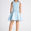 The dress is made of elastic material that fits the body. Fitted top, flared bottom. Fastened at the back with a zipper. Perfect for many occasions.