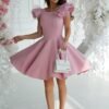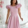 Elegant dress with unconventional shoulder buffets. Creation very well cut, perfectly emphasizes the waist. The dress is fastened with a covered zipper. Model suitable for casual parties as well as those more elegant. Available in stylish colors.