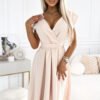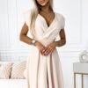 Scarlett is a classic, flared dress, ideal for many occasions. Its distinctive features include an elegant neckline and a matching belt, which emphasize the feminine silhouette. It is made of a pleasant-to-touch fabric, consisting of 95% polyester and 5% elastane, which ensures not only the comfort of wearing, but also the lightness and elasticity of the material. It looks beautiful in a muted shade of beige, giving it versatility and elegance. The Numoco brand guarantees high quality workmanship, and the fact that the dress is made in Poland testifies to the high quality of production and attention to detail.