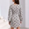 Deep neckline, long buffet sleeves finished with a button cuff. The mini length will highlight the legs in a wonderful way, and the gently flared hem will allow you to conceal minor imperfections and optically slenderize the entire figure. Fastened on the side with a covered zipper. The mini dress with an envelope neckline was created for women who like to look striking and attract their attention without too much effort. All you need to do is to choose the right footwear, and in this case the best choice will be high-heeled shoes, which will give the whole thing character. This model of dress will allow you to create an elegant, timeless styling, which is perfect for various celebrations, such as weddings, communions, birthdays, parties with friends, special banquets. The product is manufactured and sewn in Poland.