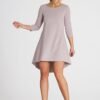 Elegant asymmetrical dress with 3/4 sleeves, with an extended, pleated back. The dress does not have pockets. A proposal ideal for many occasions.