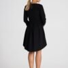 Elegant asymmetrical dress with 3/4 sleeves, with an extended, pleated back. The dress does not have pockets. A proposal ideal for many occasions.