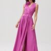 Paloma is a classic maxi dress model on thick, gently crinkled straps, which will fit perfectly on any figure. It has a layered neckline and a delicate cutout on the back, so it beautifully emphasizes the bust and exposes the back. The slit on the leg adds sensuality and lightness. Made of decent satin fabric, which gives elegance and exclusivity. Comes with a decorative rose on a string. Fastened at the back with a zipper. To complete the full styling match the dress with elegant heeled shoes and a small clutch bag in contrasting colors. The Paloma dress will be a suitable choice for important, solemn celebrations. You will feel extremely elegant and comfortable in it.