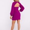Stylish mini dress sewn from a single-color fabric, ideal for special occasions. Cut off at the waist, it emphasizes the waist, and a flounce sewn on the side adds subtle lightness and feminine charm. The neckline gives the dress elegance, and the cut-out on the back gently exposes the skin, adding a note of sensuality. The dress fastens with a button and a covered zipper reaching halfway down the back for a comfortable fit. Long buffet sleeves finished with cuffs add to its unique character. Unlined model, designed and sewn in Poland.