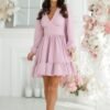 Elegant dress of unique cut with long sleeves with delicate shoulder buffets, adding subtle volume and chicness. The cuffs are finished with elastic for comfort and make the sleeves fall subtly. A flared skirt with a ruffle at the bottom gives the dress a light and romantic touch, beautifully arranged in motion. This model will be perfect for special occasions, but also for everyday wear, adding elegance and grace to your styling.