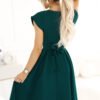 Scarlett elegant, flared dress with a wrap neckline and a belt emphasizing the waist. Made of a pleasant to the touch material (95% polyester, 5% elastane) that beautifully drapes on the silhouette. The dress in a classic, green color is a perfect choice for many occasions, from everyday meetings to elegant outings. Polish product. Numoco brand.