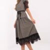 Elegant and stylish cocktail dress, which will be perfect for various occasions, from business meetings to formal events. Made of high-quality wool, it guarantees comfort and an elegant look throughout the day. The flared cut beautifully accentuates the silhouette, and the midi length adds class and subtle femininity. The short sleeve made of delicate lace and decorative lace finish at the bottom give the dress a unique character. The round neckline accentuates the neck, and the belt for tying at the waist allows for a perfect fit to the figure. The dress is fastened with a concealed zipper, which ensures comfort and a neat appearance. It is the perfect choice for women who appreciate elegance and timeless style!