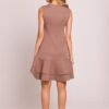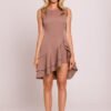 Elegant, fitted sleeveless dress made of high quality fabric. The model impresses with an asymmetrical bottom with two flounces, which add lightness and dynamic character. The high slit on the leg subtly emphasizes the silhouette, and the classic round neckline gives the whole harmony. The dress is fastened at the back with a concealed zipper, ensuring a perfect fit. The lack of lining makes it light and comfortable to wear. Designed and sewn in Poland with attention to every detail.