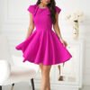 Stylish, flared dress that combines elegance with modern design. Decorative ruffles on the shoulders add charm and subtle femininity. Perfect for special occasions, meetings, or romantic evenings. Made of high-quality material that beautifully drapes on the silhouette. The dress fastens with a concealed zipper.