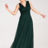 Maxi sleeveless dress with a wrap neckline at the front and a deep cut at the back. The top is delicately ruched, with a wide band under the bust. The back is tied in a bow.