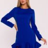 A subtle and feminine dress made of smooth fabric with a matte finish is a perfect choice for many occasions. The simple form has been enriched with a fancy ruffle at the bottom, which gives the whole outfit lightness and girlish charm. The model has a classic, semi-circular neckline and long sleeves, making it look elegant and timeless. The hidden zipper at the back ensures easy wearing and aesthetic finish. The lack of pockets and lining makes the dress light, comfortable, and fits perfectly on the silhouette. The cut is designed to subtly emphasize the figure – the top creates a simple, slightly tailored line with shaping seams, and the flared bottom with a ruffle beautifully moves in motion. The mini length adds freshness and a modern character to the outfit. Designed and made in Poland, with women appreciating simple elegance with a touch of originality in mind.
