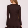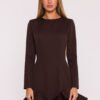 A subtle and feminine dress made of smooth fabric with a matte finish is a perfect choice for many occasions. The simple form has been embellished with a fancy ruffle at the bottom, which gives the whole a lightness and girlish charm. The model has a classic, semi-round neckline and long sleeves, making it look elegant and timeless. The hidden zipper at the back ensures easy putting on and a neat finish. The lack of pockets and lining makes the dress light, comfortable, and fits beautifully on the silhouette. The design is intended to subtly emphasize the figure – the top creates a simple, slightly tailored line with shaping seams, while the flared bottom with a ruffle beautifully moves with the body. The mini length adds freshness and a modern character to the outfit. Designed and made in Poland, with women in mind who appreciate simple elegance with a touch of originality.