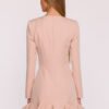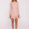 The subtle and feminine dress made of smooth fabric with a matte finish is a perfect choice for many occasions. The simple form has been enriched with a fancy ruffle at the bottom, which gives the whole outfit lightness and girlish charm. The model has a classic, semi-circular neckline and long sleeves, making it look elegant and timeless. The concealed zipper at the back ensures easy dressing and a neat finish. The lack of pockets and lining makes the dress light, comfortable, and beautifully fits the silhouette. The design is intended to subtly emphasize the figure – the top creates a simple, slightly tailored line with shaping seams, and the flared bottom with a ruffle moves beautifully. The mini length adds freshness and a modern character to the outfit. Designed and made in Poland, with women who appreciate simple elegance with a touch of originality in mind.
