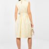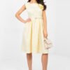 Elegant cocktail dress designed for special occasions and stylish parties. The flared cut beautifully accentuates the waist and gives the silhouette a lightness, while the knee-length adds class and timeless elegance. The dress is made of high-quality polyester and viscose blend, which ensures comfort and excellent fabric draping. The varied texture of the fabric gives the whole a unique character and subtle depth. Sleeveless dress with a classic round neckline looks extremely chic. Cinched at the waist, with decorative pleats, it beautifully shapes the silhouette and accentuates feminine curves. The set includes a fastened belt, which further highlights the waist, and a detachable flower-shaped brooch, allowing you to adjust the styling to the occasion. It is a perfect choice for parties, family celebrations, and elegant meetings when you want to look exceptionally classy.
