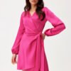 Dress made of soft, satin material, which gives it an exceptionally elegant character. The wrap-around style with a tie at the waist beautifully accentuates the silhouette, subtly masking minor imperfections. The mini length showcases the legs and provides freedom of movement. Long sleeves, lightly gathered at the shoulders and finished with elastic, create stylish puffs. The Catlin model is a dress that will work for many occasions. Styled elegantly with heels and statement jewelry, it will be perfect for formal events. On the other hand, paired with sporty sneakers, it gains a casual, girly character. The dress is designed and made in Poland.