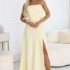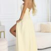Imagine a summer party, warm light, and a stylization that looks elegant from the first step. The Elara model is a maxi dress in a buttery yellow shade, perfect when you want to feel confident and comfortable all evening. It’s a choice that will work for weddings, family celebrations, and evening outings. The dress has a fitted strapless top and open back with an eye-catching corset lacing. The lacing allows you to adjust the circumference and positioning exactly as you like, to emphasize the waist more strongly or to set it looser for greater freedom. The long skirt falls smoothly, and the high slit on the leg adds lightness and makes it easier to walk freely. Made in Poland.
