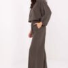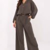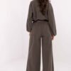 Stylish corduroy pants in a casual style, perfect for everyday wear. Made of soft material with a high polyester content, they provide comfort and ease of wear throughout the day. The model has a high waist with an elastic band sewn in, guaranteeing a perfect fit to the silhouette and comfort in movement. The wide leg style gives the pants a modern, slightly retro character, while the side pockets add practicality. The whole look is complemented by a fastened belt, emphasizing the waist and completing the stylish appearance. These fabric pants are an excellent choice for women who appreciate freedom and elegant minimalism in their everyday outfits.
