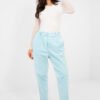 Casual corduroy paperbag pants are a comfortable and stylish option for everyday wear. The high-waisted model beautifully accentuates the waist, while the elastic waistband ensures comfort and a perfect fit to the silhouette. The lack of closure additionally increases comfort and gives the whole outfit a casual character. The tapered legs subtly slim the legs, and the side slip pockets add practicality. The pants are made of a blend of cotton and elastane, making them soft, pleasant to the touch, and flexible. They are a perfect choice for everyday styling, they go well with both a simple T-shirt and an oversized sweater or a fitted jumper.