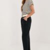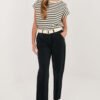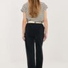 Women’s corduroy trousers in a trendy carrot cut, perfect for everyday wear. Made of high-quality cotton blend with elastane, they provide comfort, flexibility, and a good fit to the silhouette. The high-waisted model with a waistband ensures comfortable wear, and the additional fastened belt accentuates the waist and adds a stylish finish. Tapered legs with a length of 7/8 give the whole outfit a modern character and visually elongate the legs. Trousers in a smooth pattern, equipped with practical side pockets, combine functionality with minimalist aesthetics.