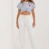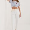 Women’s corduroy pants in a trendy carrot cut, perfect for everyday wear. Made from high-quality cotton blend with added elastane, they provide comfort, flexibility, and a good fit to the silhouette. The high-waisted model with an elastic waistband guarantees wearing comfort, and an additional buttoned belt accentuates the waist and adds a stylish finish. Tapered legs with a length of 7/8 give the whole outfit a modern character and visually lengthen the legs. Pants in a smooth pattern, equipped with practical side pockets, combine functionality with minimalist aesthetics.
