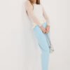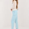 Women’s corduroy trousers with an elegant cigarette cut, which will work perfectly in everyday stylizations. Made of high-quality cotton and elastane blend, they provide comfort, flexibility, and a perfect fit to the silhouette. The model with an elastic waistband guarantees comfort and freedom of movement, and the additional fastened belt emphasizes the waist and gives the whole a stylish character. Tapered 7/8 length legs visually slim the silhouette and give a modern look. Trousers in a smooth pattern, without a classic fastening, equipped with practical side slip pockets, combine functionality with timeless elegance.