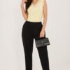 Corduroy paperbag pants are a stylish and comfortable option for everyday wear and work. The high waist with an elastic band beautifully accentuates the waist, providing comfort and a perfect fit to the silhouette. The model features long, slightly tapered legs that visually slim the legs and give the whole a modern character. The smooth corduroy-like material made of polyester is pleasant to the touch and practical to use. The pants do not have a classic fastening, which increases comfort and makes them easy to put on. Functional, side slip pockets add to their everyday utility. This is a versatile model that combines a fashionable look with comfort, perfect for many stylizations.