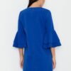 Elegant, loose-fitting dress with a zip at the back. A frill at the sleeves adds an additional style which gives a modern and subtle touch.