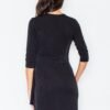 An asymmetrical dress with 3/4 sleeves, an envelope neckline and a spectacular tie at the waist. Perfect for any occasion.