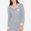 A great long-sleeved dress made of comfortable cotton is a comfortable proposition for women looking for elegance in a sports edition. An additional advantage is a light neckline finished with white piping and a sleeve finished with a delicate welt. It will emphasize femininity and attractiveness of the figure.