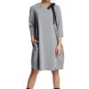 For lovers of looser cuts, a comfortable dress with pockets and a decorative tie at the neck. On cooler days can be used as a tunic to trousers or leggings.