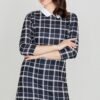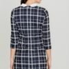Classic midi dress in a geometric check pattern with a decorative collar and 3/4 sleeves. Great for work as well as everyday wear.
