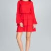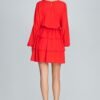 A great long-sleeved dress creased at the waist with three ruffles. It beautifully emphasizes the silhouette and makes you look expressive and feminine. It is a typical “must have” of this season.
