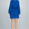 A great long-sleeved dress creased at the waist with three ruffles. It beautifully emphasizes the silhouette and makes you look expressive and feminine. It is a typical “must have” of this season.
