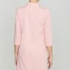 Mini dress made of soft fabric. A simple cut with 3 sleeves, fastened at the front with press studs. The plunging neckline is finished with a tied sash. Thanks to that the dress gains a more feminine character.