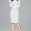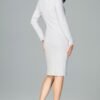 Fitted knitted dress before the knee beautifully emphasize the feminine figure. Left side slit with snap fastening adds subtlety and mystery.