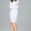 Knitted fitted dress before the knee beautifully emphasizes the feminine figure. A slit with press studs on the left side adds subtlety and mystery.