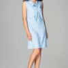 Elegant, airy sleeveless dress. It has a loose form and is ideal for ladies who appreciate modernity and femininity. It is finished with a small collar under the neck with a decorative tie.