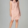 Elegant, airy sleeveless dress. It has a loose form and is ideal for ladies who appreciate modernity and femininity. It is finished with a small collar under the neck with a decorative tie.