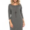 Loose-fitting dress with pockets on hips. Dress with a boat neckline and 3/4 sleeves.