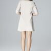 Slightly flared 3/4 sleeve dress with a decorative clasp at the neckline. Trapezoidal cut is perfect for many figure types.
