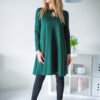 Loose-fitting dress with long sleeves. Decorative bow at neckline. Perfect for many occasions.