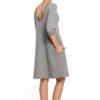 A loose cut that does not restrict movement, and at the same time feminine details and a deeply cut neckline on the back make it a perfect everyday dress in which you will feel feminine and free regardless of the chosen accessories. Dress with side seam pockets and 3/4 sleeves.