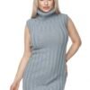 Sleeveless knit mini dress. Dress with wide ribbed pattern. The dress has a turtleneck. Interesting cut ideal for many occasions.