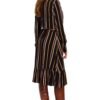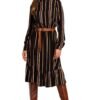 A waist-cut dress with a stand-up collar under the neck and an A-line bottom with a frill is a very feminine cut that is sure to be suitable for both daytime and formal occasions. A belt with a buckle attached to the dress emphasizes the waist and complements the look.