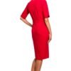 Subtle and elegant pencil dress with an elevated waist line and a V neckline with cutouts. Dress with short sleeves, fastened with a covered zip. Dress without a lining. Soft office style at its best.