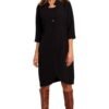 Elegant dress with jacket cut. Unique cut with a concealed pleat with mini press studs at the front and elastic at the back. A high collar, shoulder epaulettes and subtle buttons in amber add class. Dress is unlined.