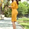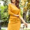 Sporty dress with 3/4 sleeves and pockets – honey color. Polish product. Made of pleasant to the touch elastic material of high quality Polish viscose. Brand numoco.